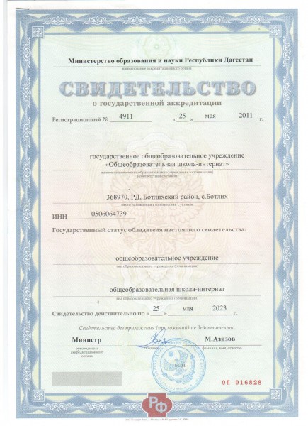 Адрес местонахождения образовательной организации* 368971, Республика Дагестан, Ботлихский район, с.Ботлих, ул. Имама Газимагомеда 89